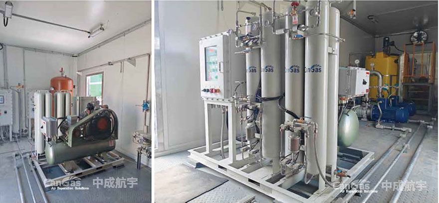 中成航宇的CAPN系列制氮系统,为山东某油田企业现场提供氮气源,主要用于设备检修吹扫管道内的粉尘、易燃气体和有毒气体。该系统采用变压吸附方式制取纯度99.9%的氮气,因工作环境的极端危险性,该系统整体设计防爆,避免潜在危险的发生。系统性能卓越,运行稳定、安全,运营成本低等特点,赢得了客户的多次认可!